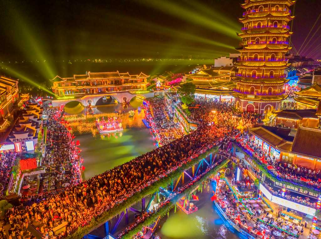 Biển người xem biểu diễn tại Cổ trấn Thái Hồ ở Hồ Châu, tỉnh Chiết Giang, Trung Quốc ngày 1.10. Ảnh: CGNT |