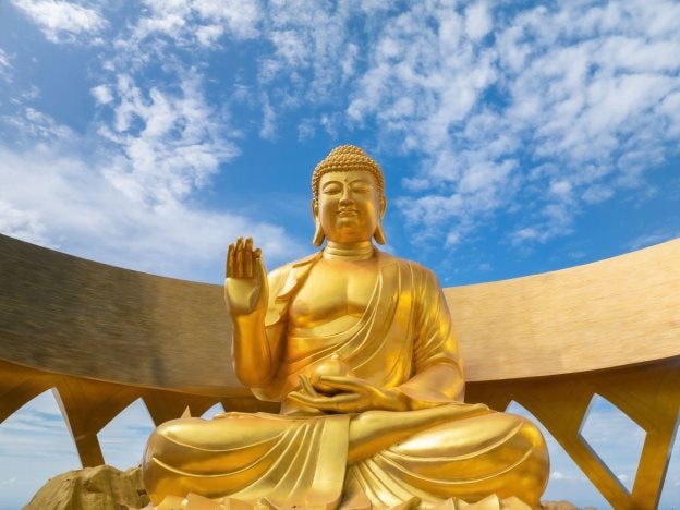 | Tôn tượng Đức Phật Câu Na Hàm Mâu Ni biểu trưng cho sự sung túc và viên mãn. |