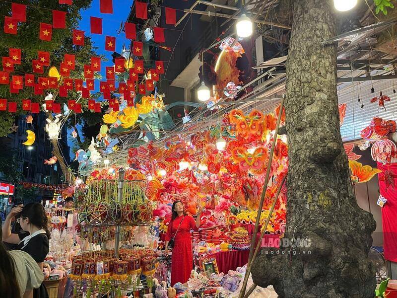 Dù là những ngày trong tuần, phố Hàng Mã thu hút không ít du khách tới check-in và tận hưởng không khí Trung thu. Ảnh: Tường Vy
