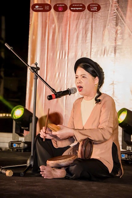 | Nghệ nhân Tạ Hạnh biểu diễn hát Xẩm tại sự kiện văn hóa cộng đồng. (Ảnh: NVCC) |