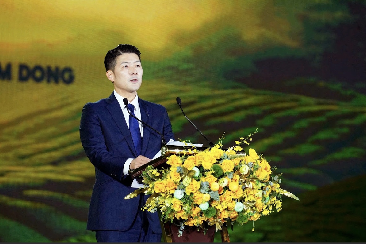 | Đại diện Ban tổ chức, ông Mori Kazuki, Tổng Giám đốc Công ty ChèLâm Đồng phát biểu, tổng kết các dấu ấn nổi bật của Lễ hội |