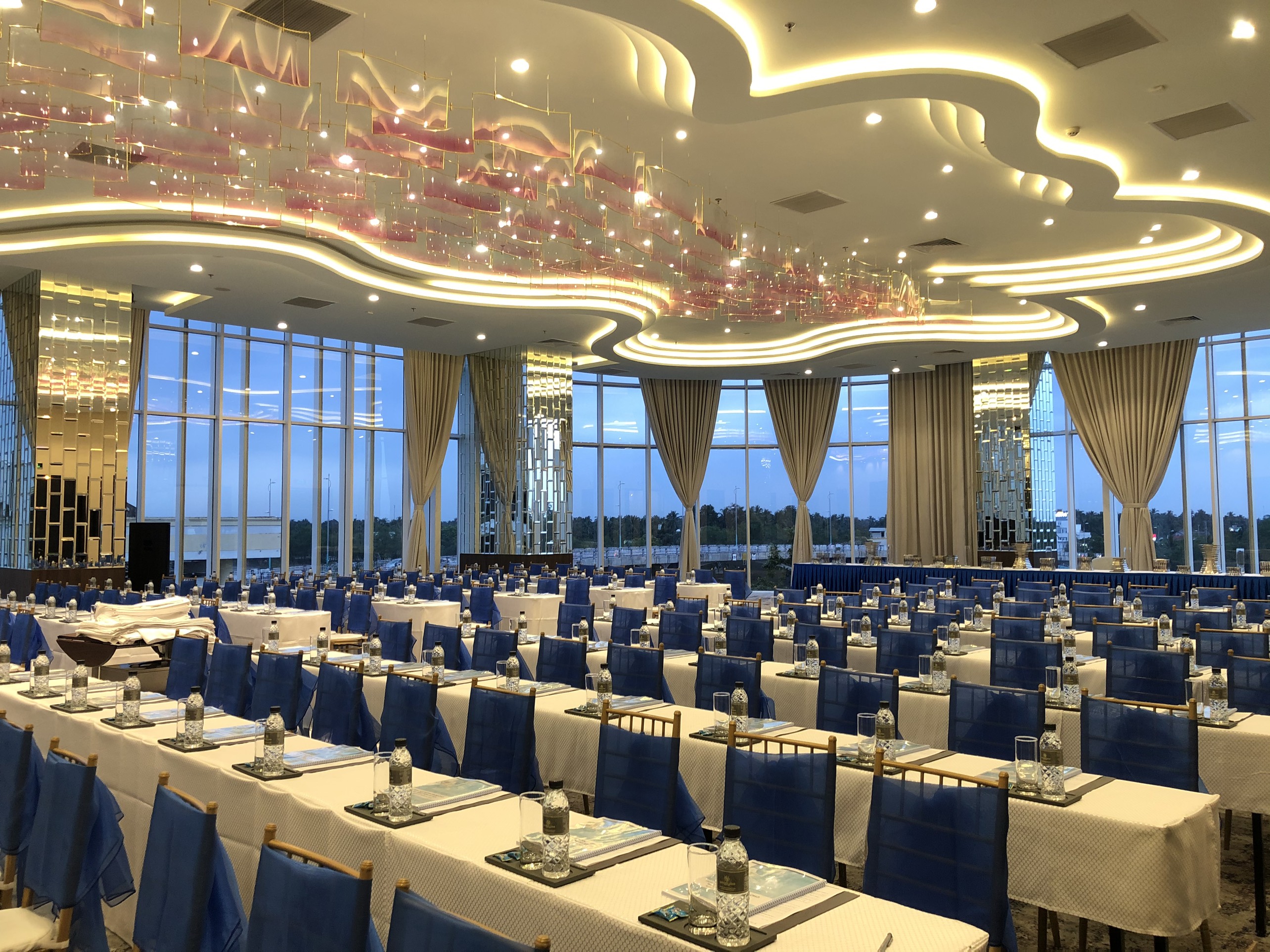 Cùng với đó, Diamond Stars Bến Tre còn đáp ứng được cho quý khách hàng các bữa tiệc sang trọng đẳng cấp với sức chứa lên đến 600 khách. Nhà hàng ADAMAS tại tầng 5 của khách sạn cũng là một nét chấm phá đặc biệt khi là khu vực kết hợp giữa nhà hàng - quầy bar - hồ bơi, là nơi khách có thể hòa mình trong làn nước mát, nhâm nhi tách cà phê buổi sáng và thả tầm nhìn vào những rặng dừa xanh.