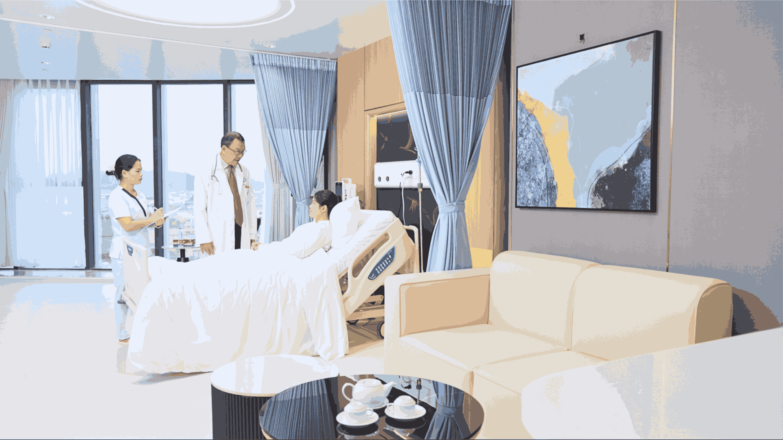 Song song với khu kỹ thuật cao là hệ thống phòng nội trú tiêu chuẩn cao cấp, được thiết kế tiện nghi, riêng tư, tạo điều kiện cho người bệnh nghỉ ngơi, phục hồi trong không gian yên tĩnh. Đặc biệt, bệnh viện còn bố trí khu an dưỡng dành cho người nhà bệnh nhân, thể hiện sự quan tâm toàn diện đến cả người bệnh và những người thân đang đồng hành cùng họ.