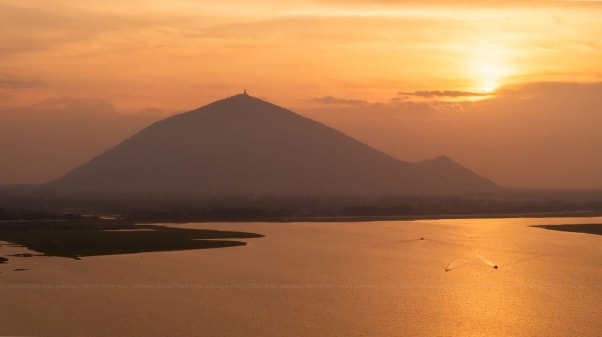 | Núi Bà Đen nhìn từ hồ Dầu Tiếng. Ảnh: Hải Triều |
