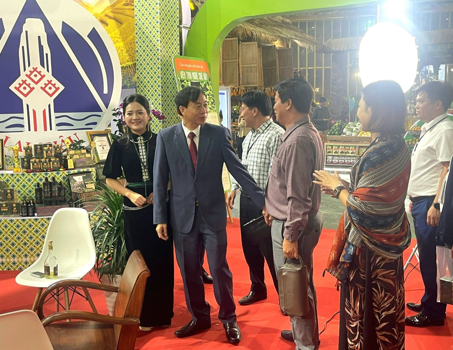 | Không gian trưng bày với chủ đề "Lai Châu hương sắc vùng cao" được nhiều đại biểu và du khách quan tâm. |
