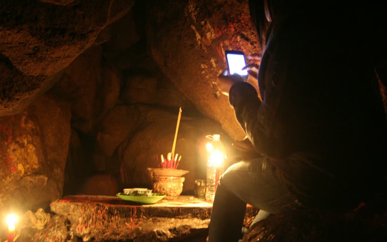 Ánh sáng chiếu rọi trong hang – biểu tượng niềm tin giữa chốn linh sơn. Dinh Ông Thẻ – Dấu ấn thiêng liêng trong lòng núi |