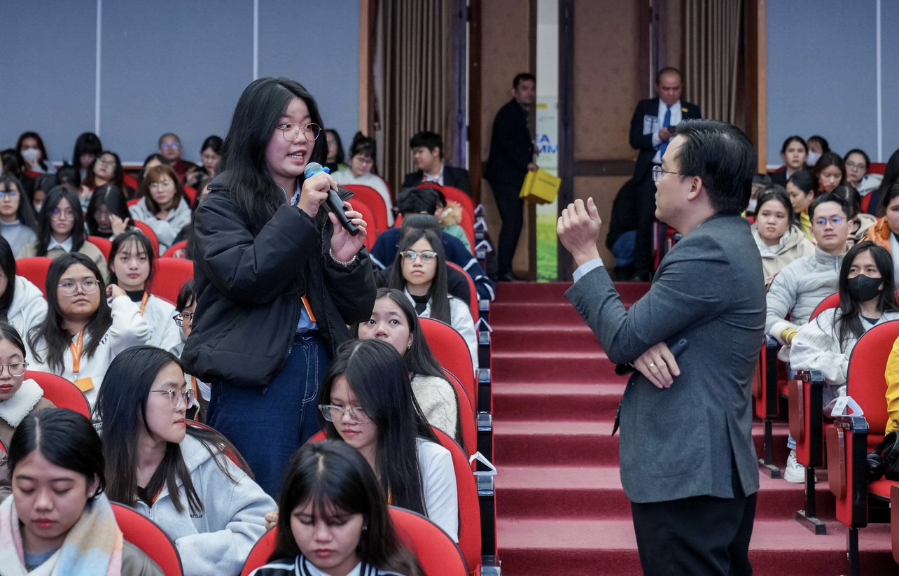 | Sinh viên ĐH Đà Lạt tự tin chia sẻ quan điểm, thảo luận cùng diễn giả |